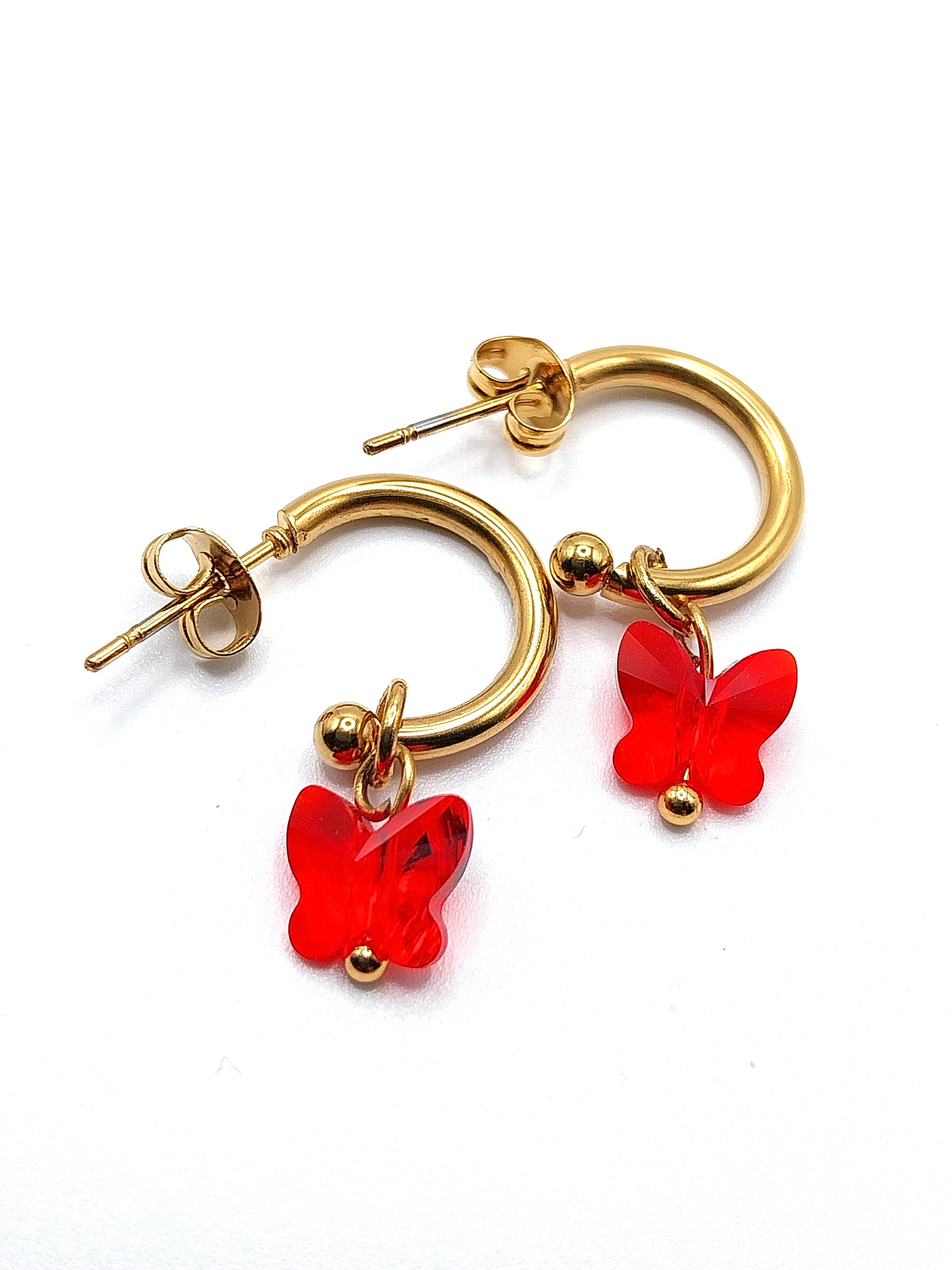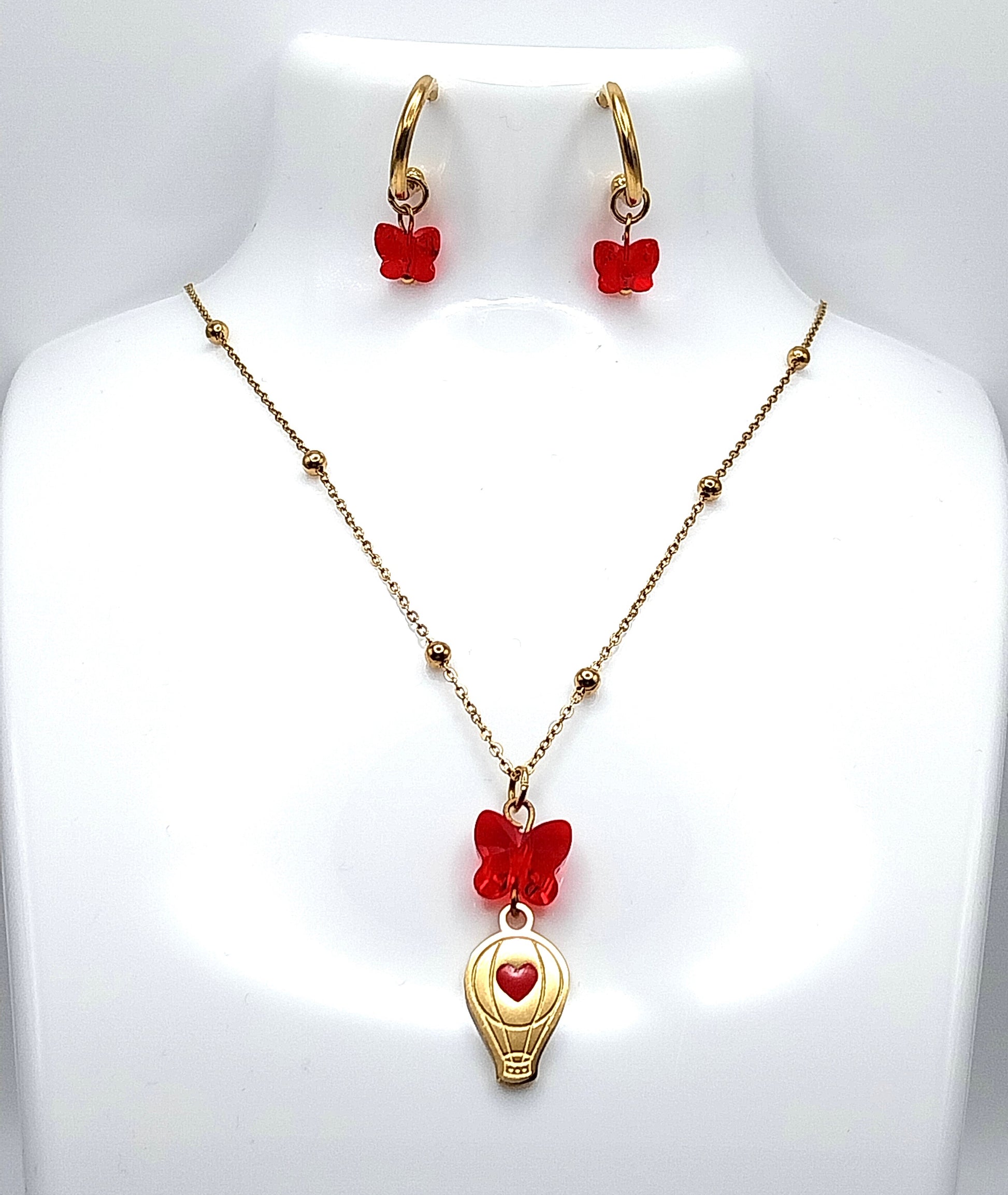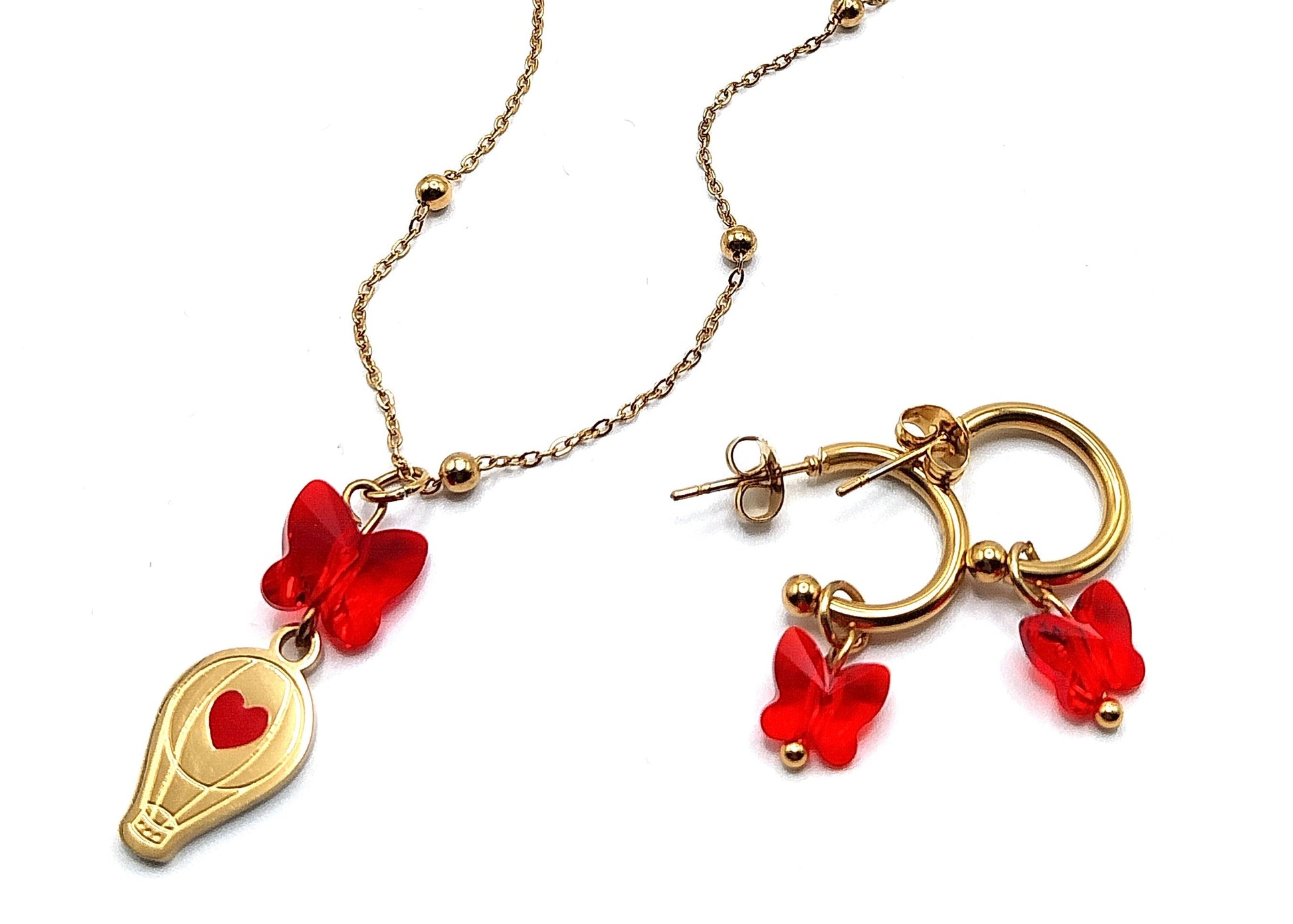Set consisting of 1 rolo necklace and 1 pair of earrings with bow hook, in 925 silver and crystal hearts.