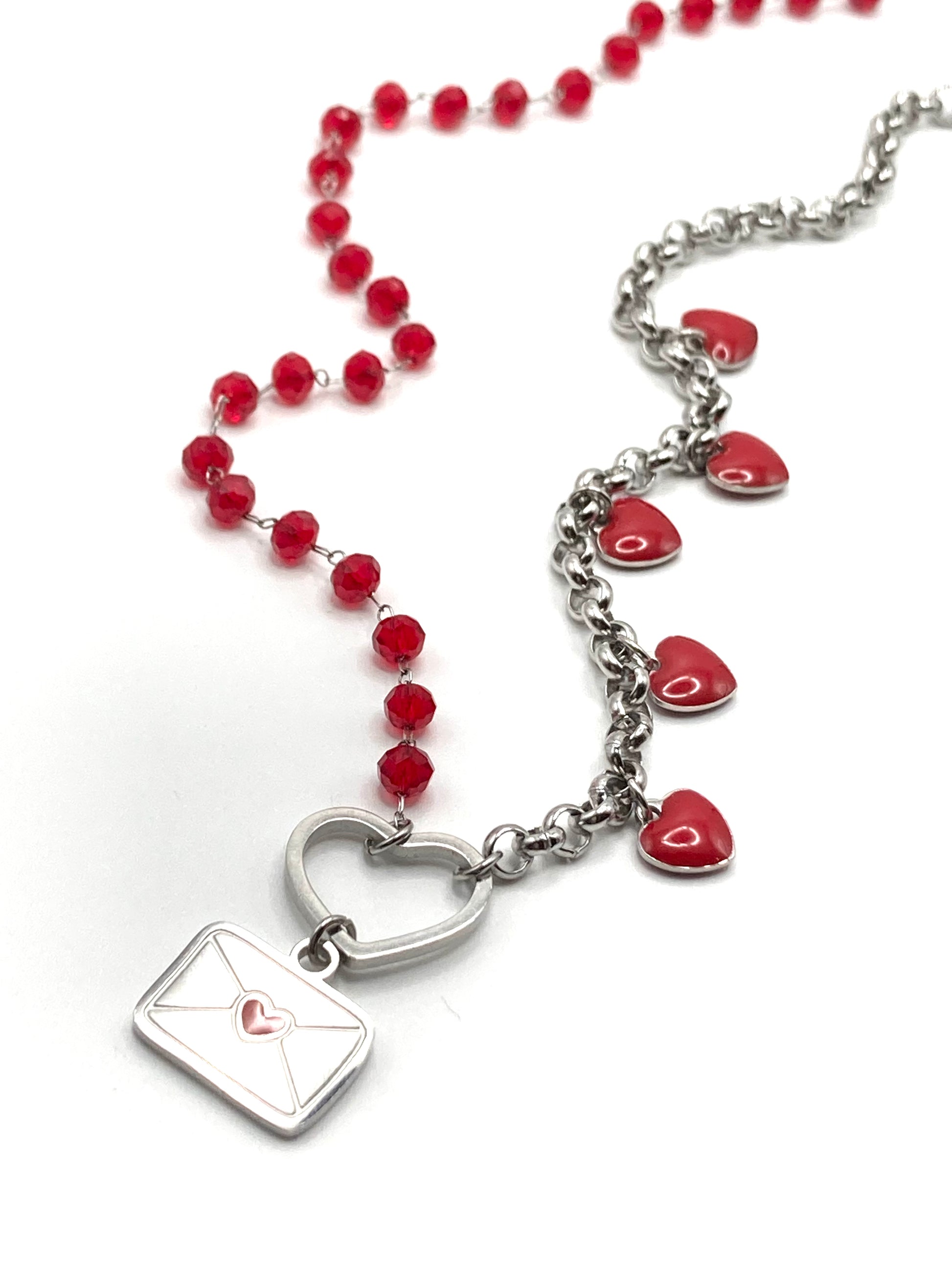 Steel necklace with crystals, curved star and central lobster clasp.