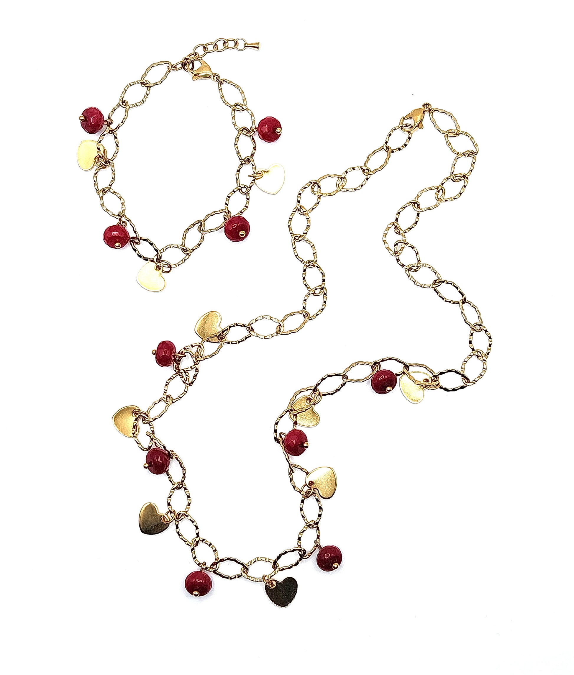 Collier et boucles d'oreilles avec des cœurs en céramique