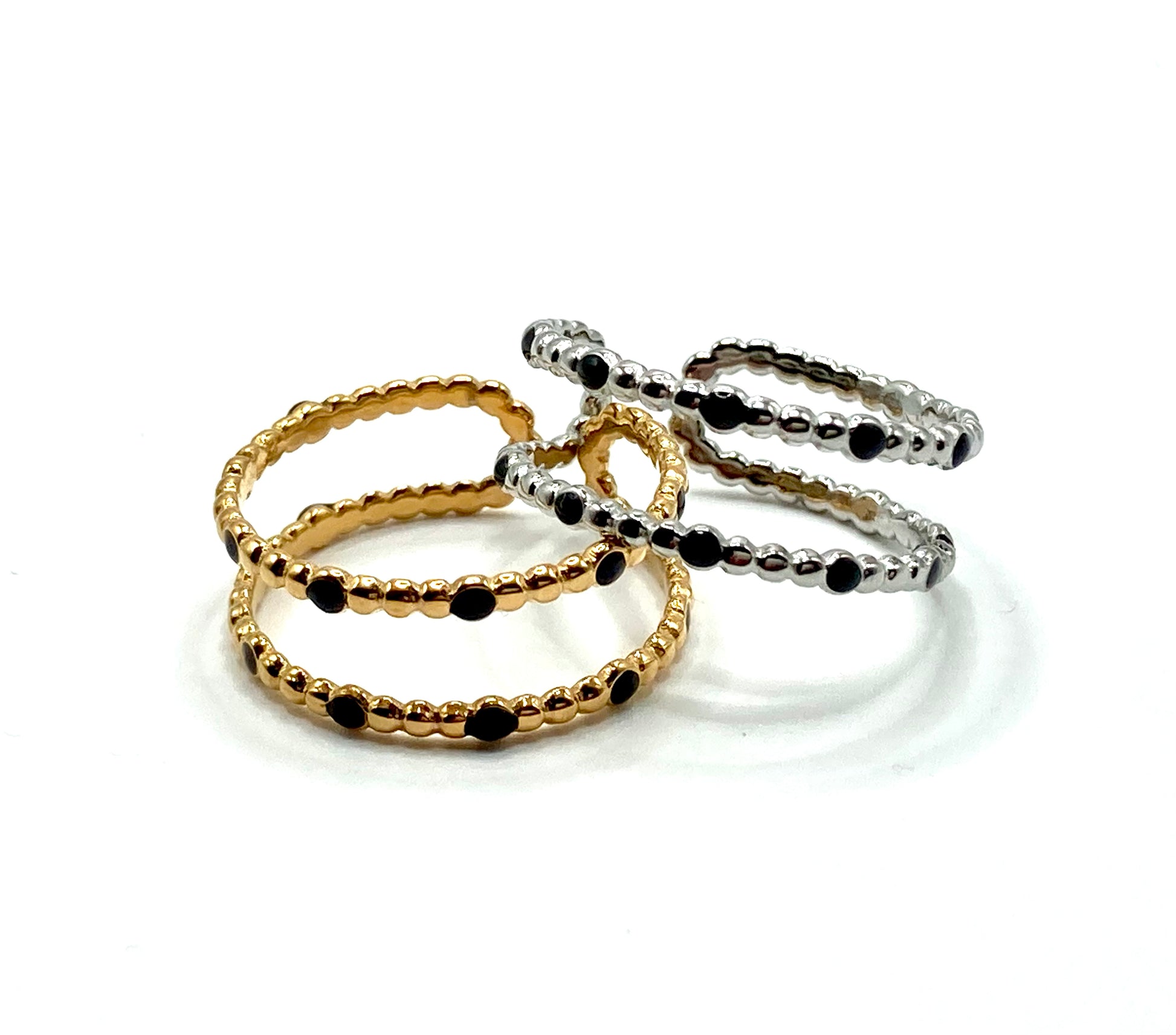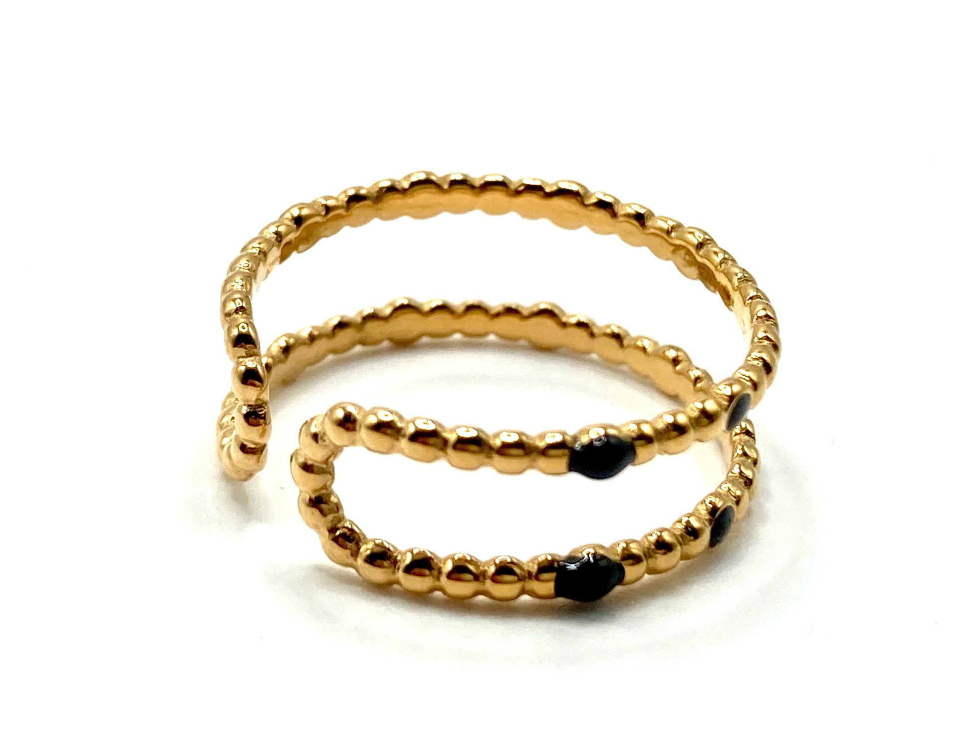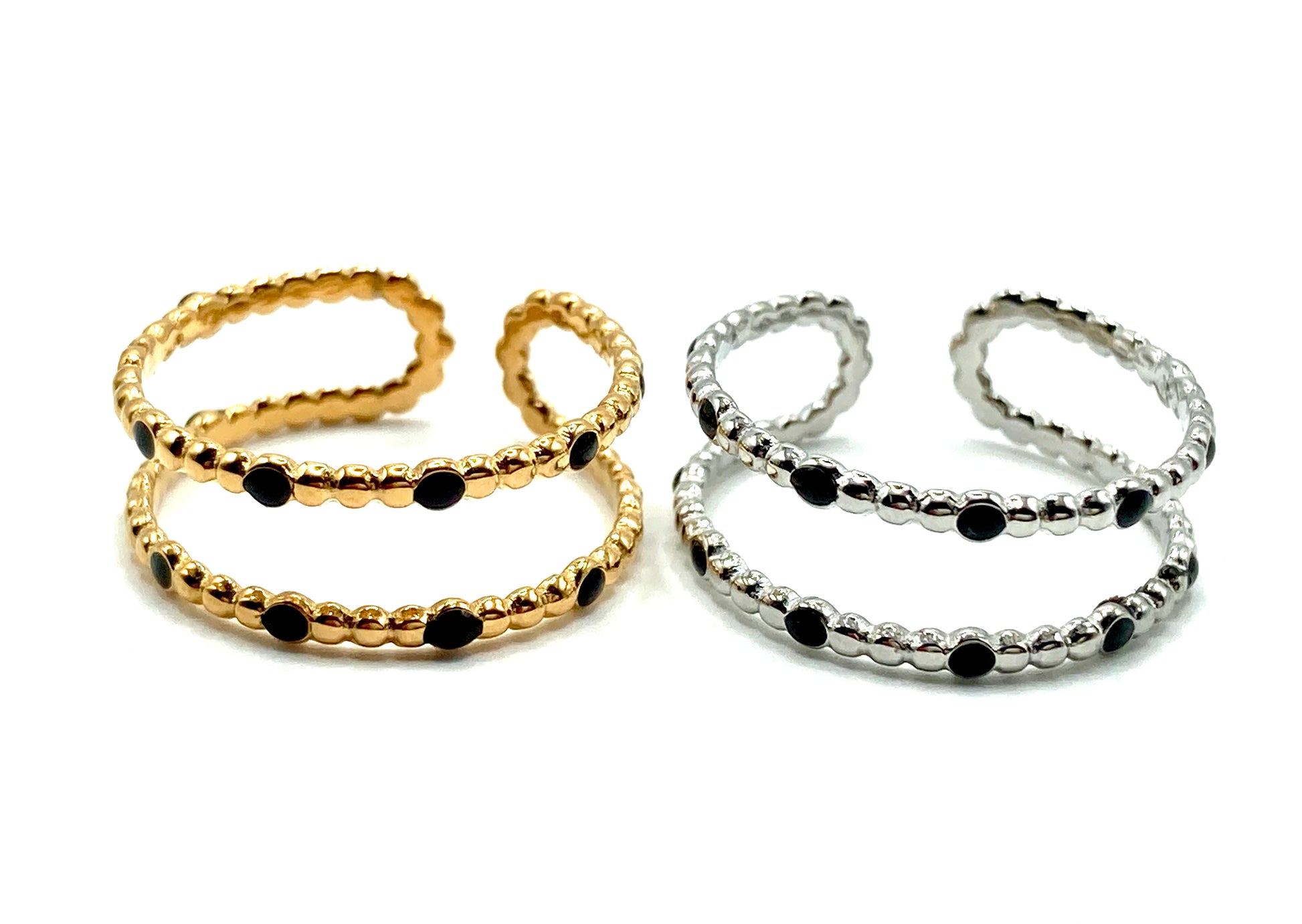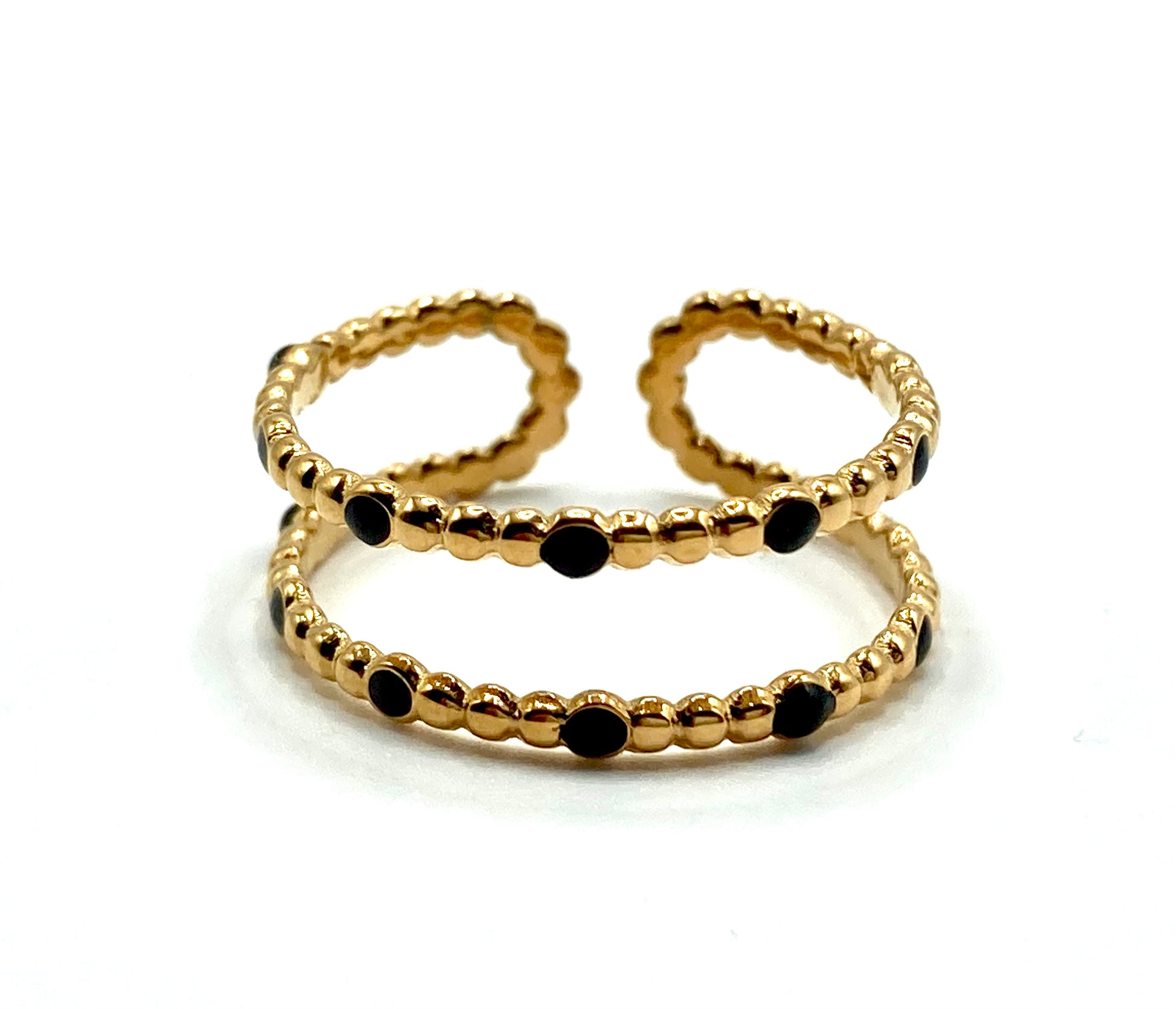 Anello in acciaio inossidabile, regolabile, con pois neri smaltati