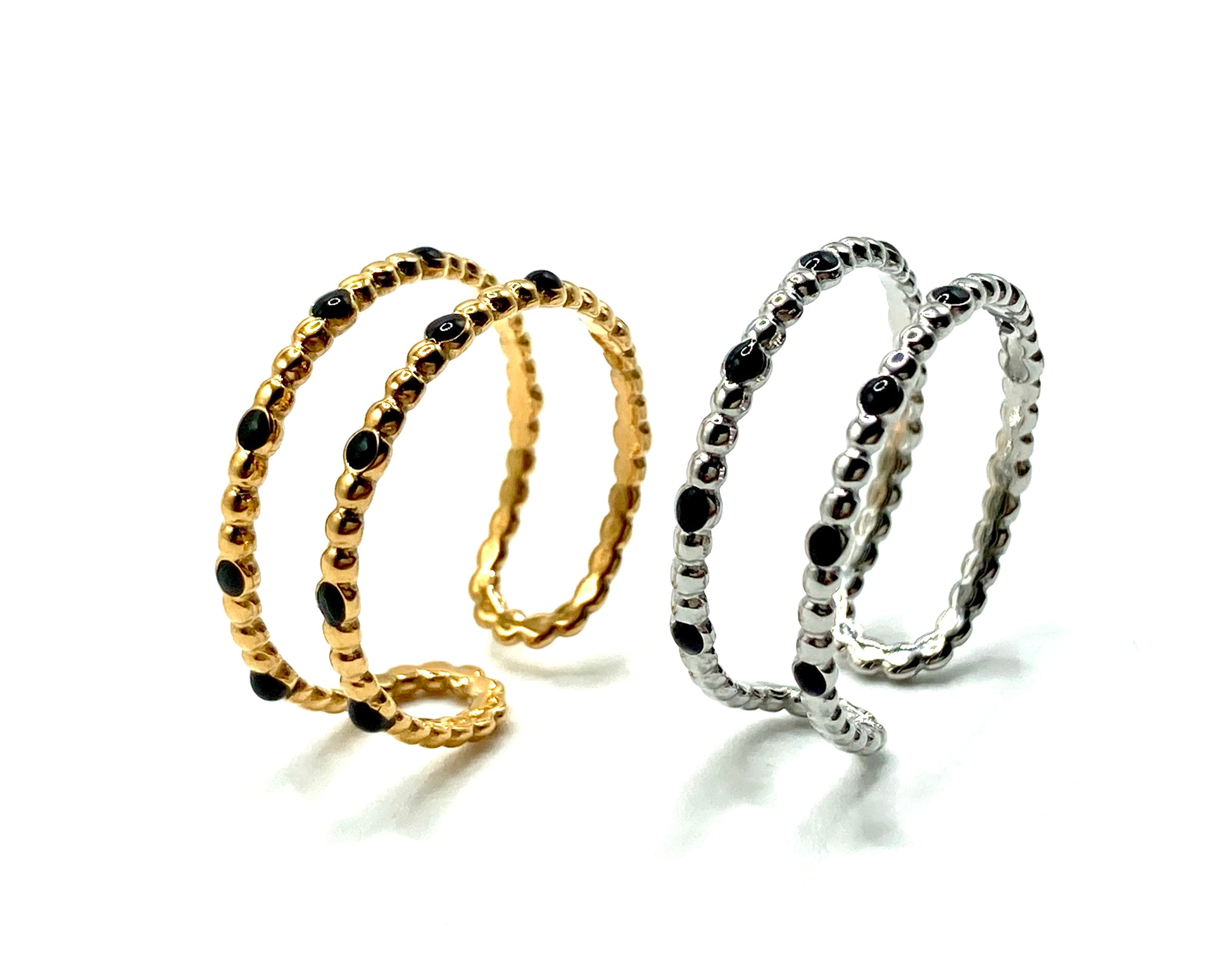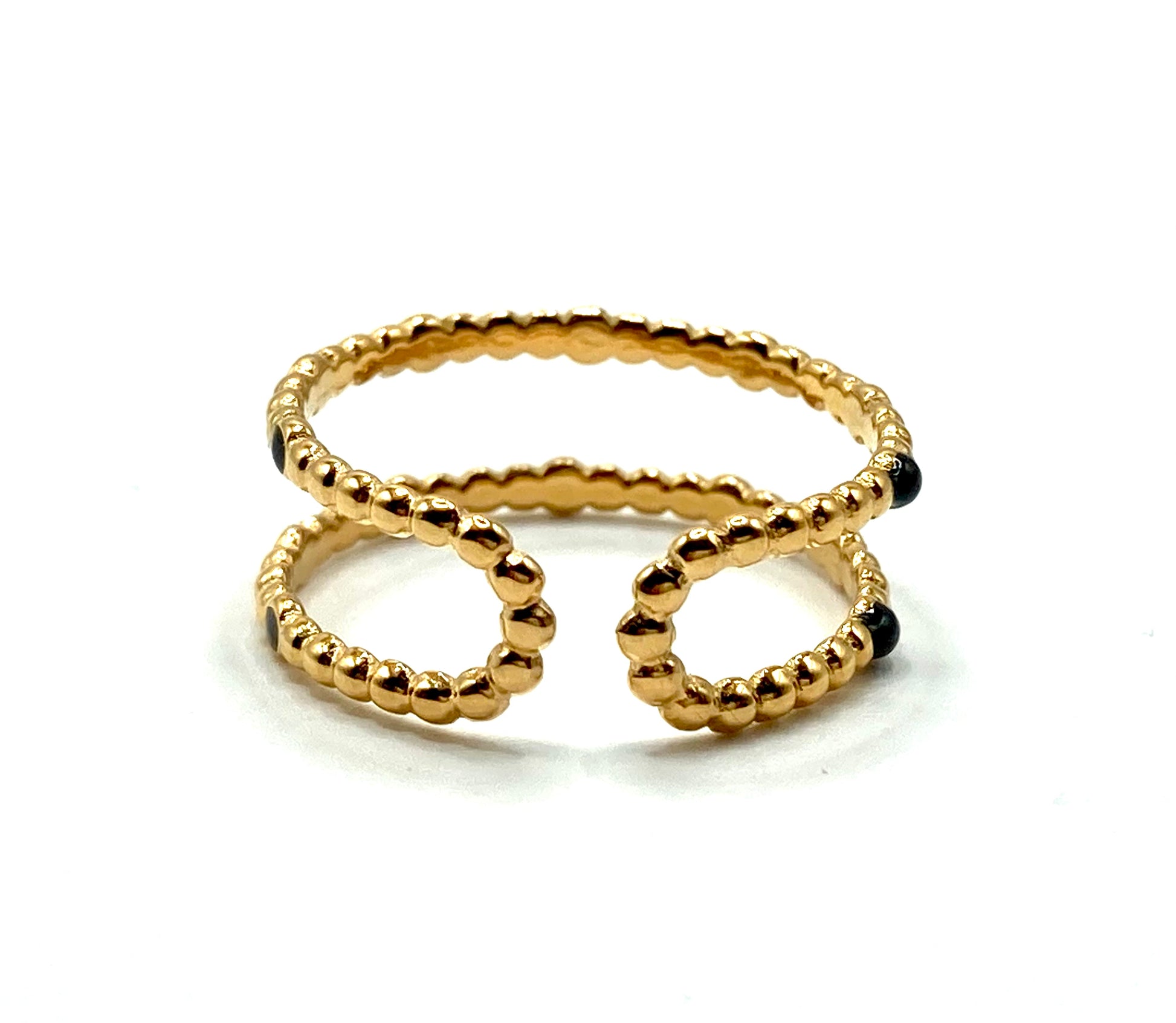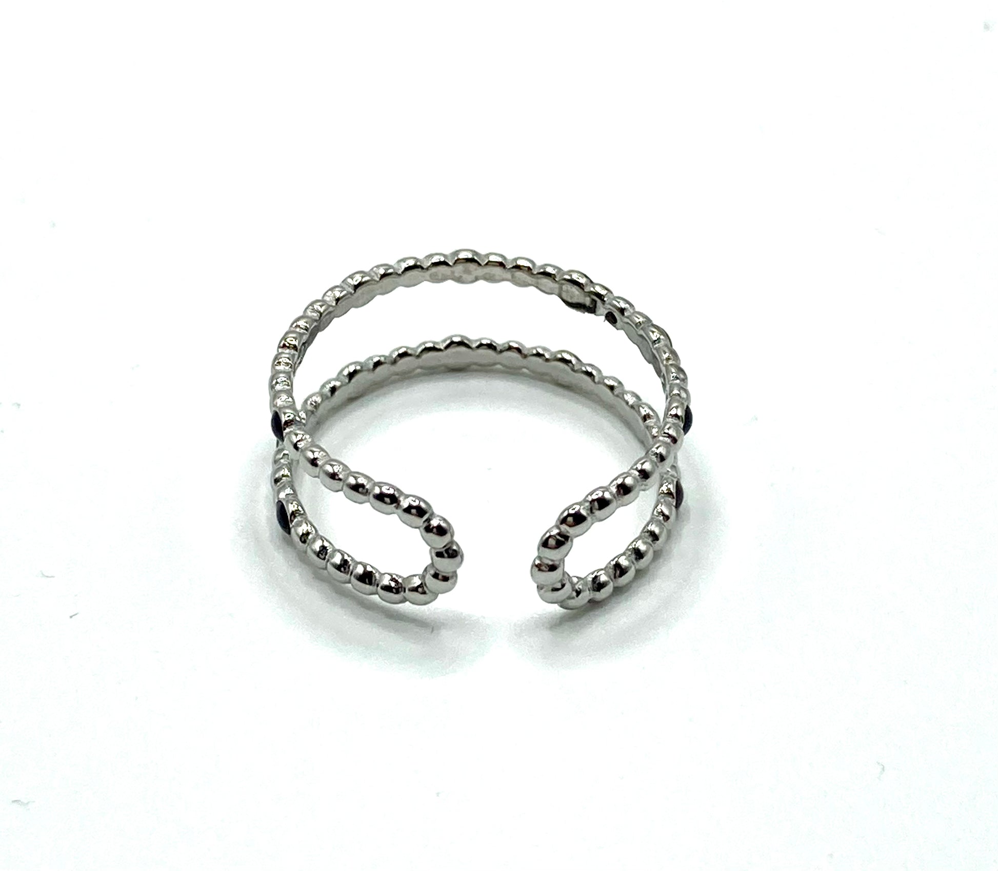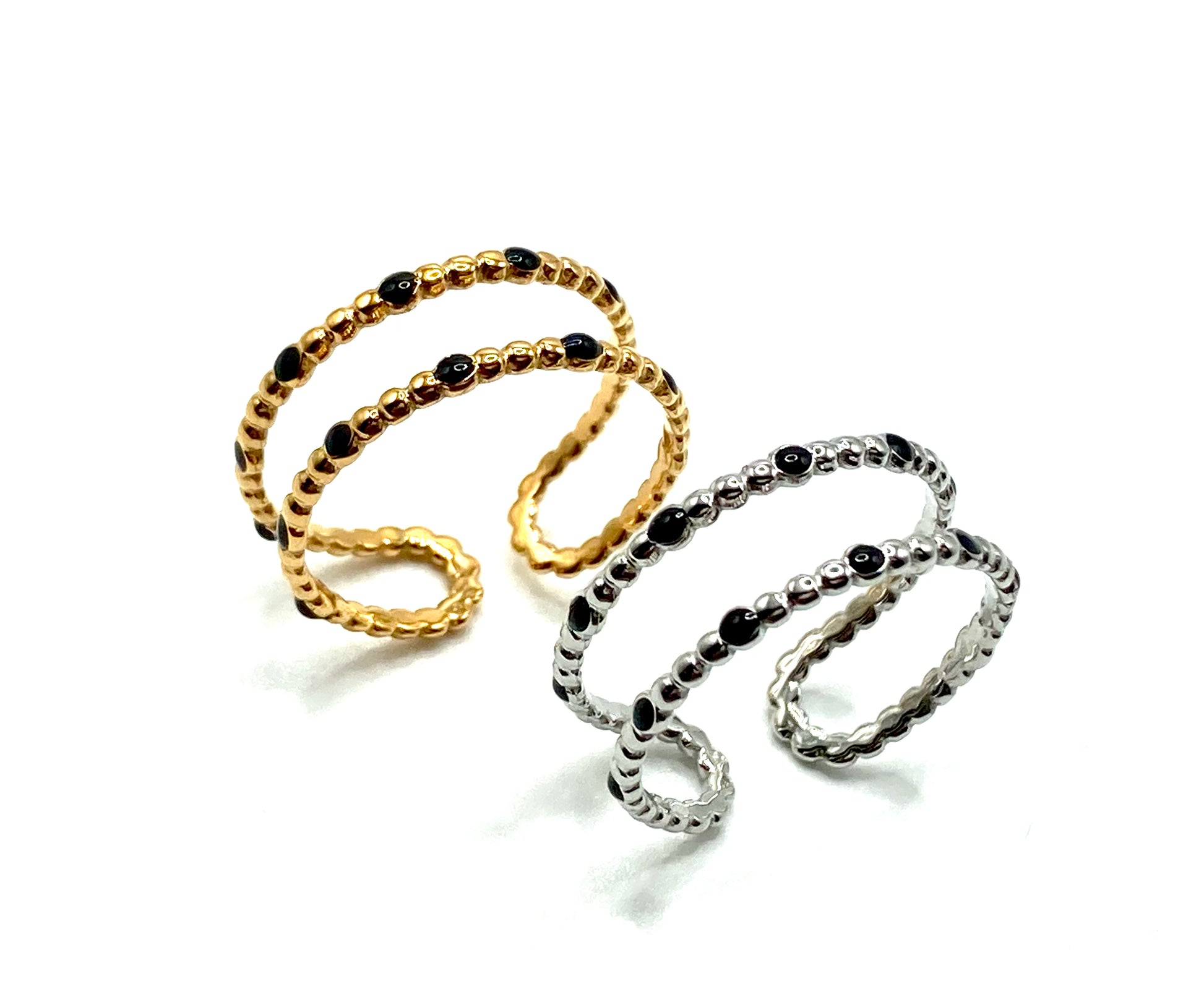 Anello in acciaio inossidabile, regolabile, con pois neri smaltati