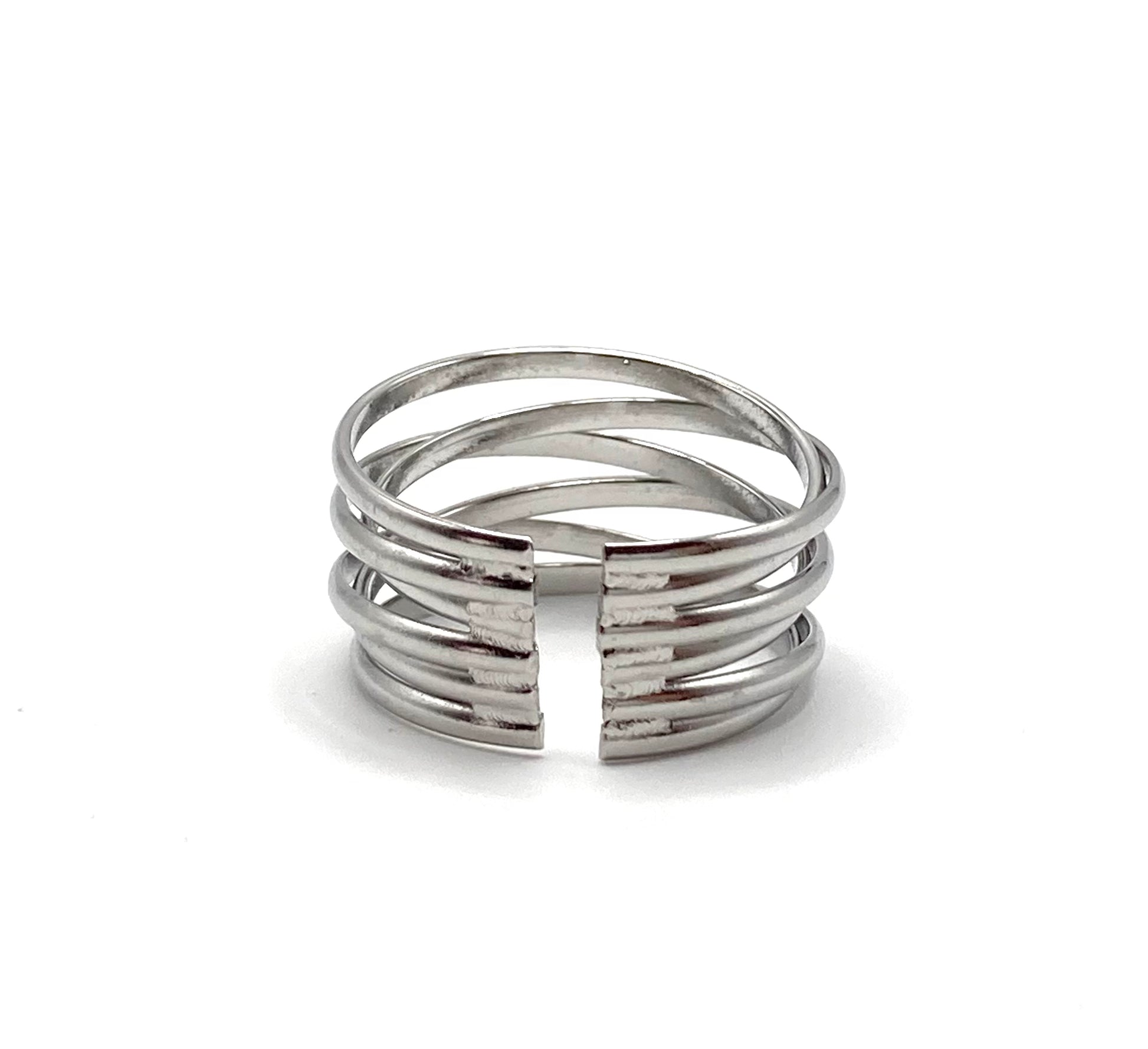 Anello in acciaio inossidabile intrecciato, a fascia, regolabile
