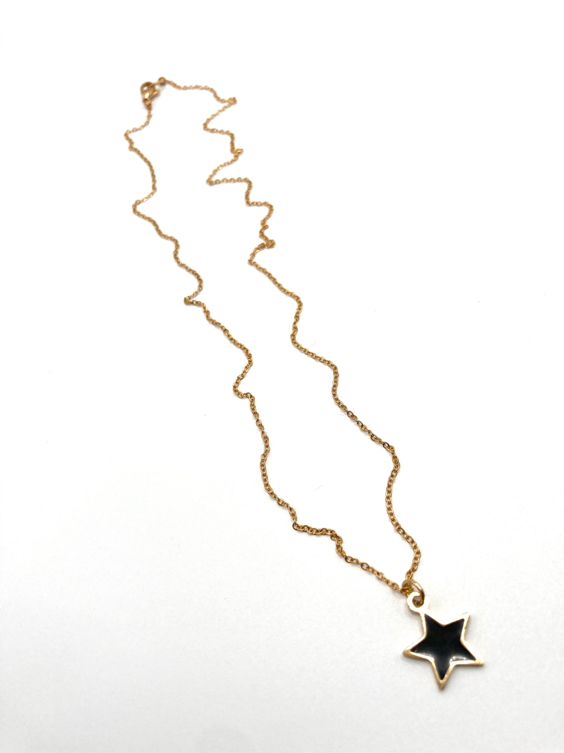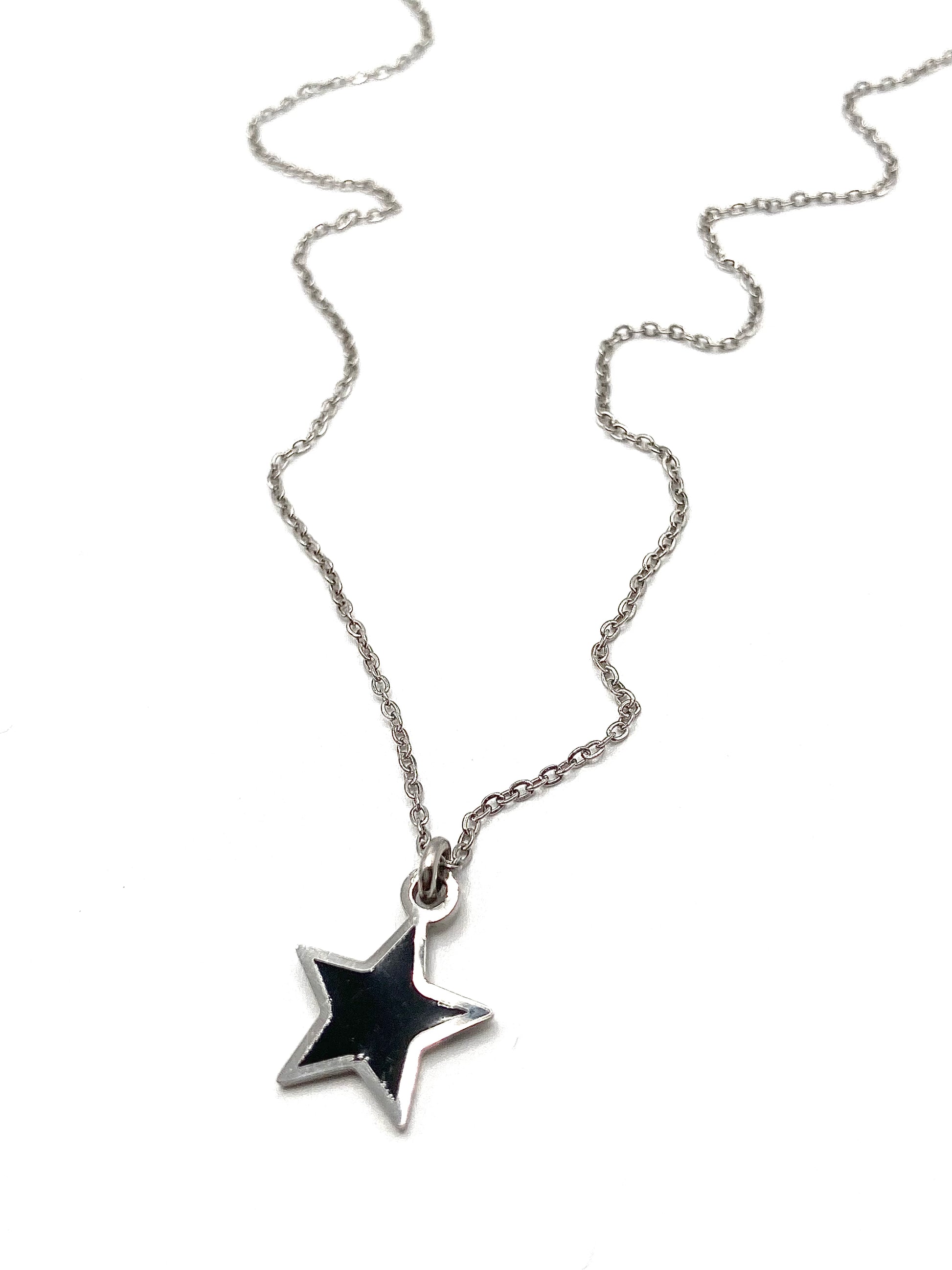 Collana in acciaio forzatina sottile, con stella smaltata in acciaio da 13mm