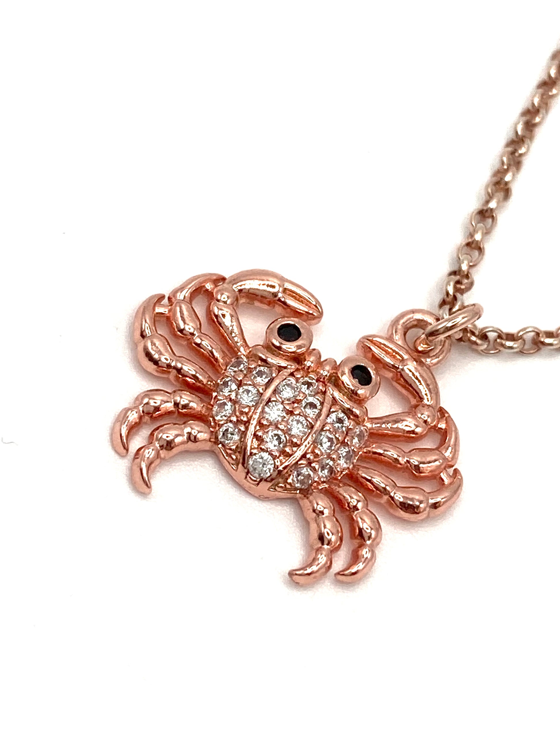 Collana in Argento 925 con catena rolo’, charm “Granchio” con zirconi ca.18mm.