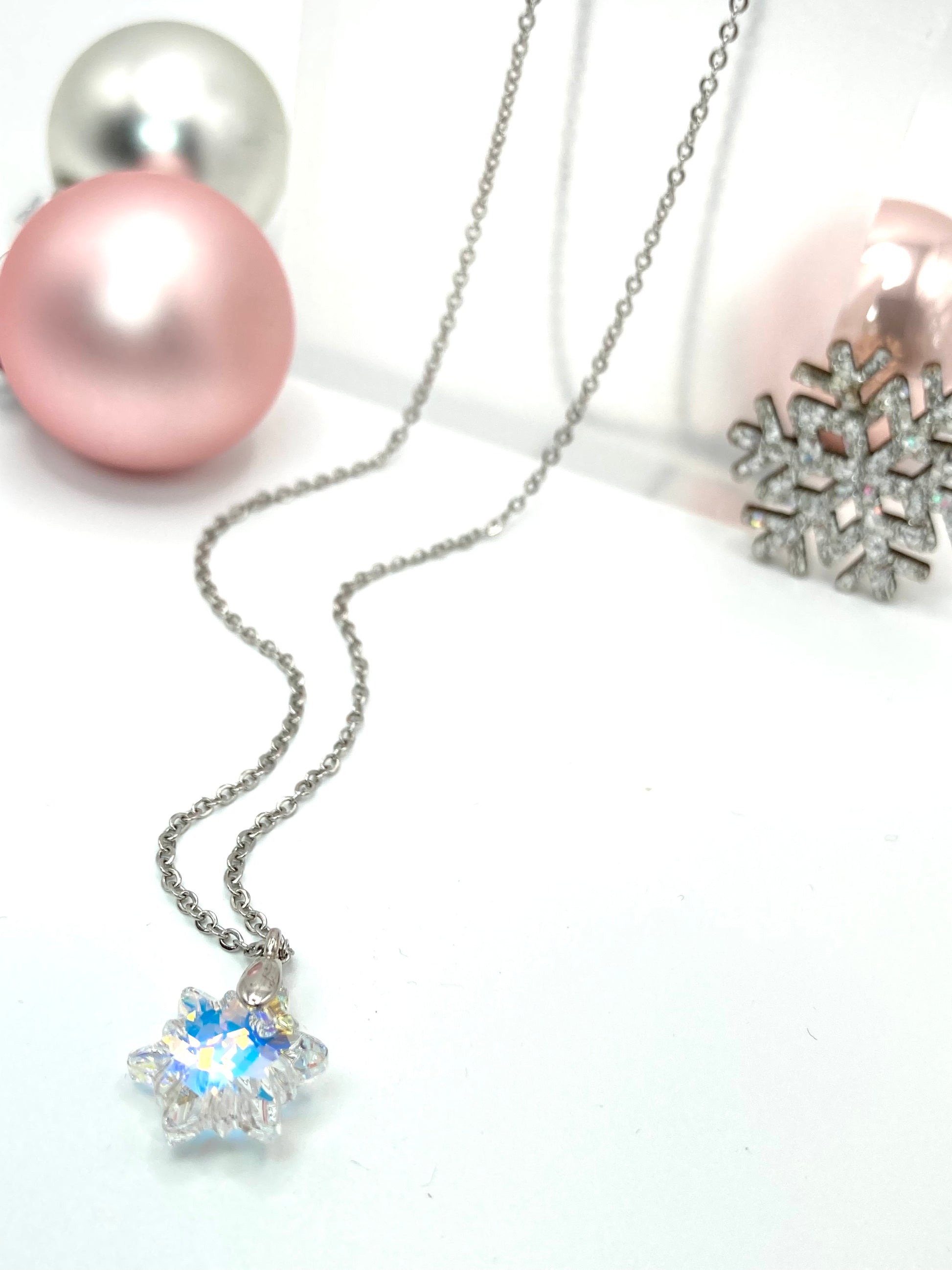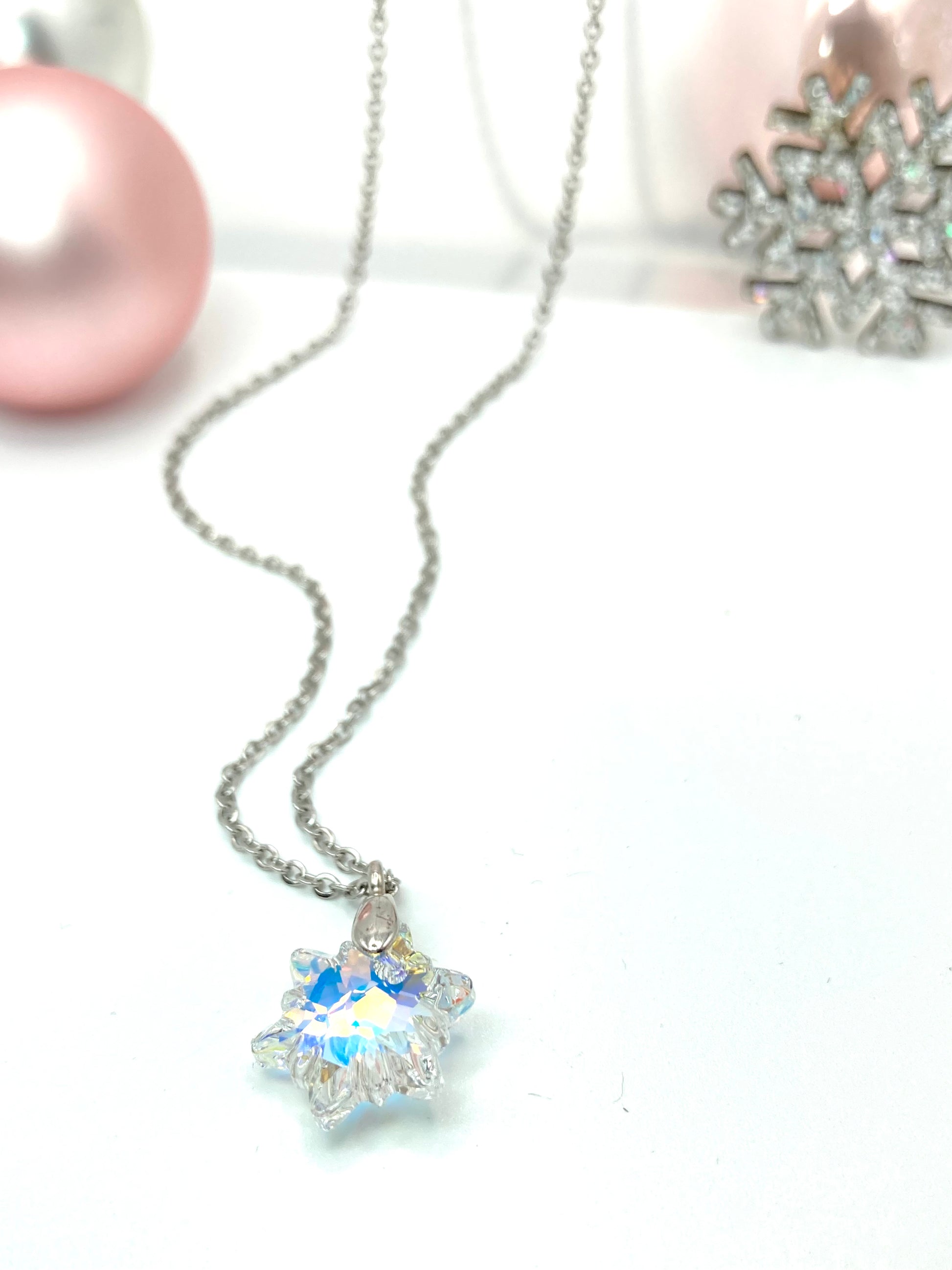 Collana in acciaio con catena forzatina e charm fiocco di neve 14mm.