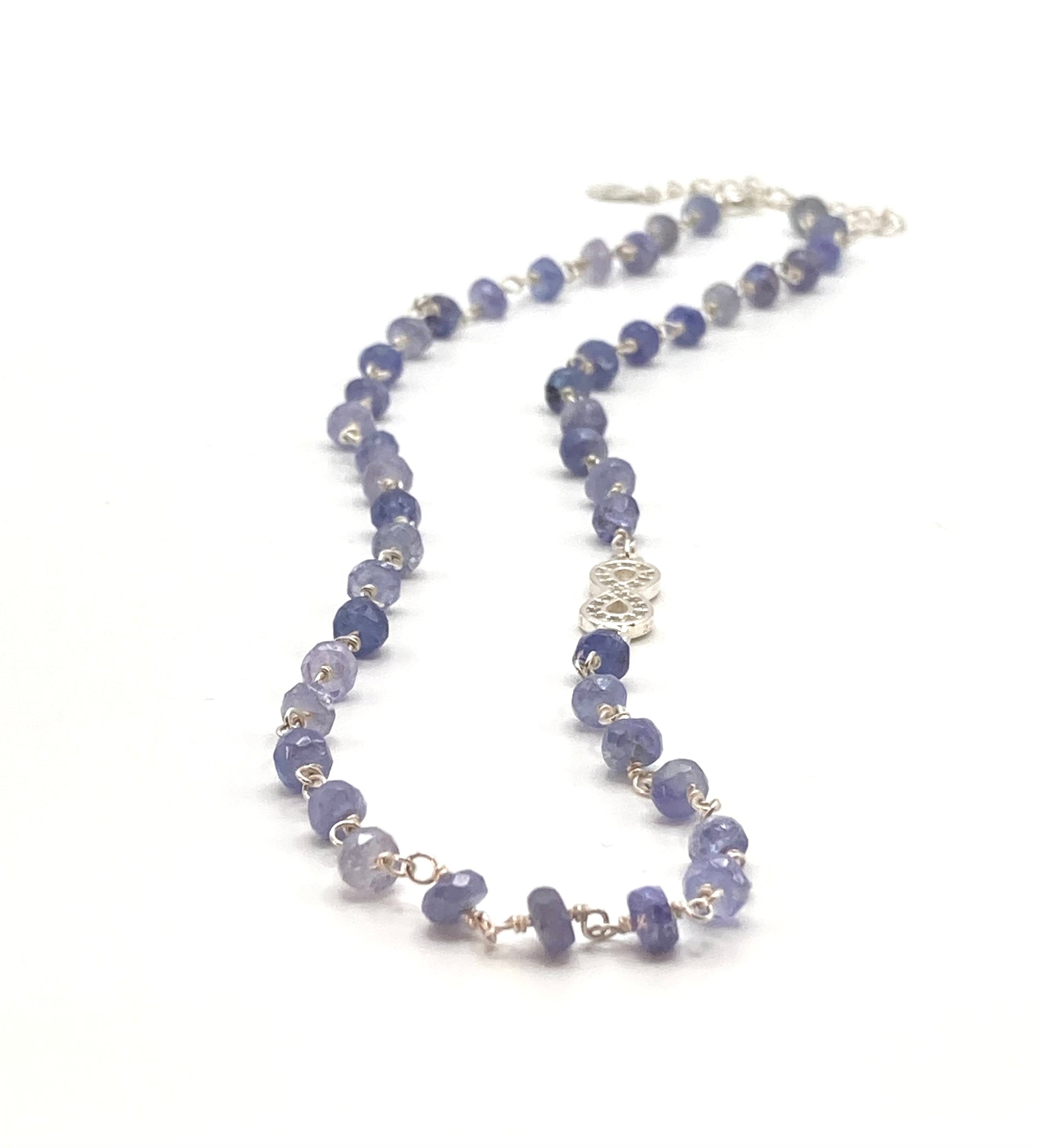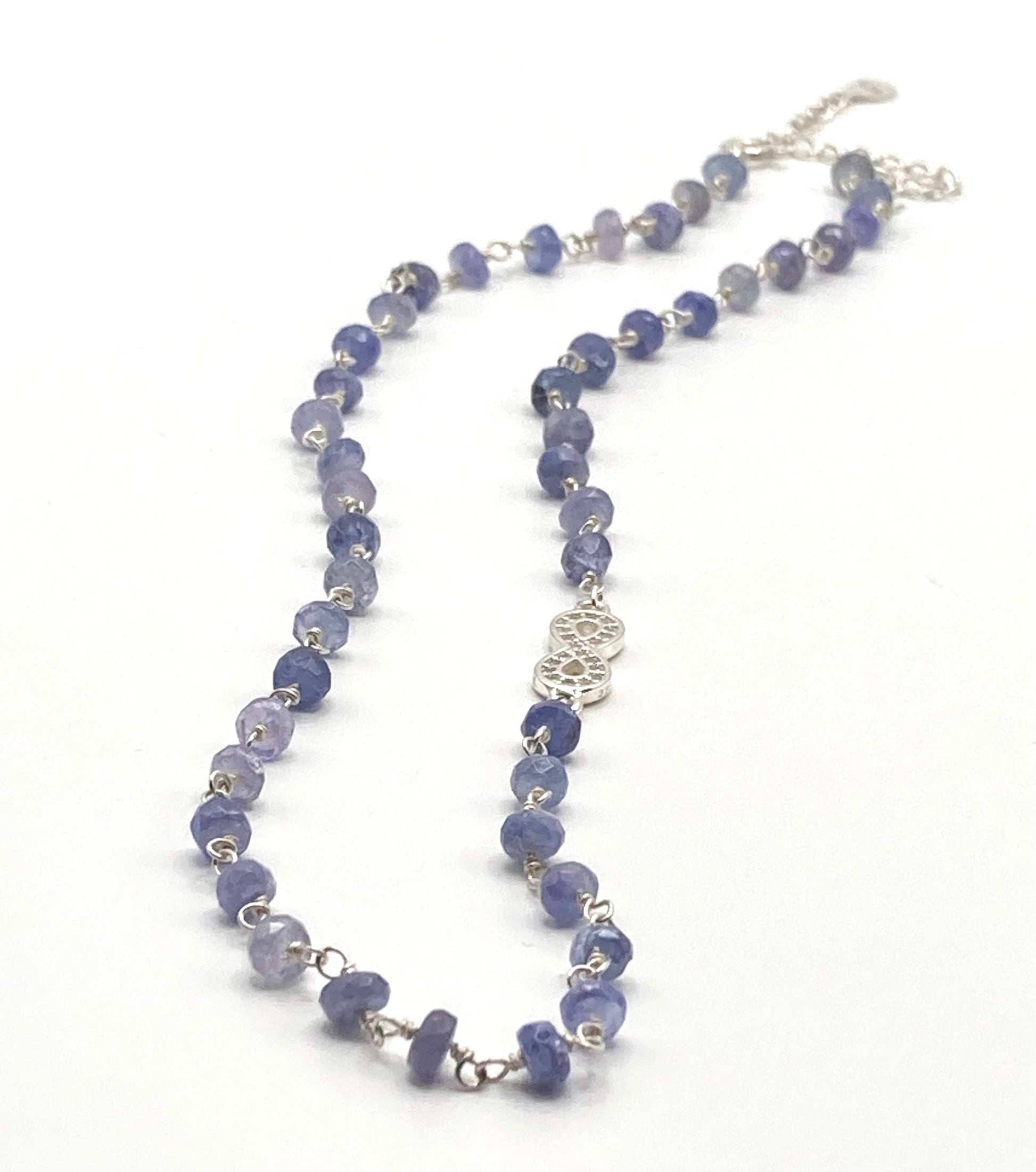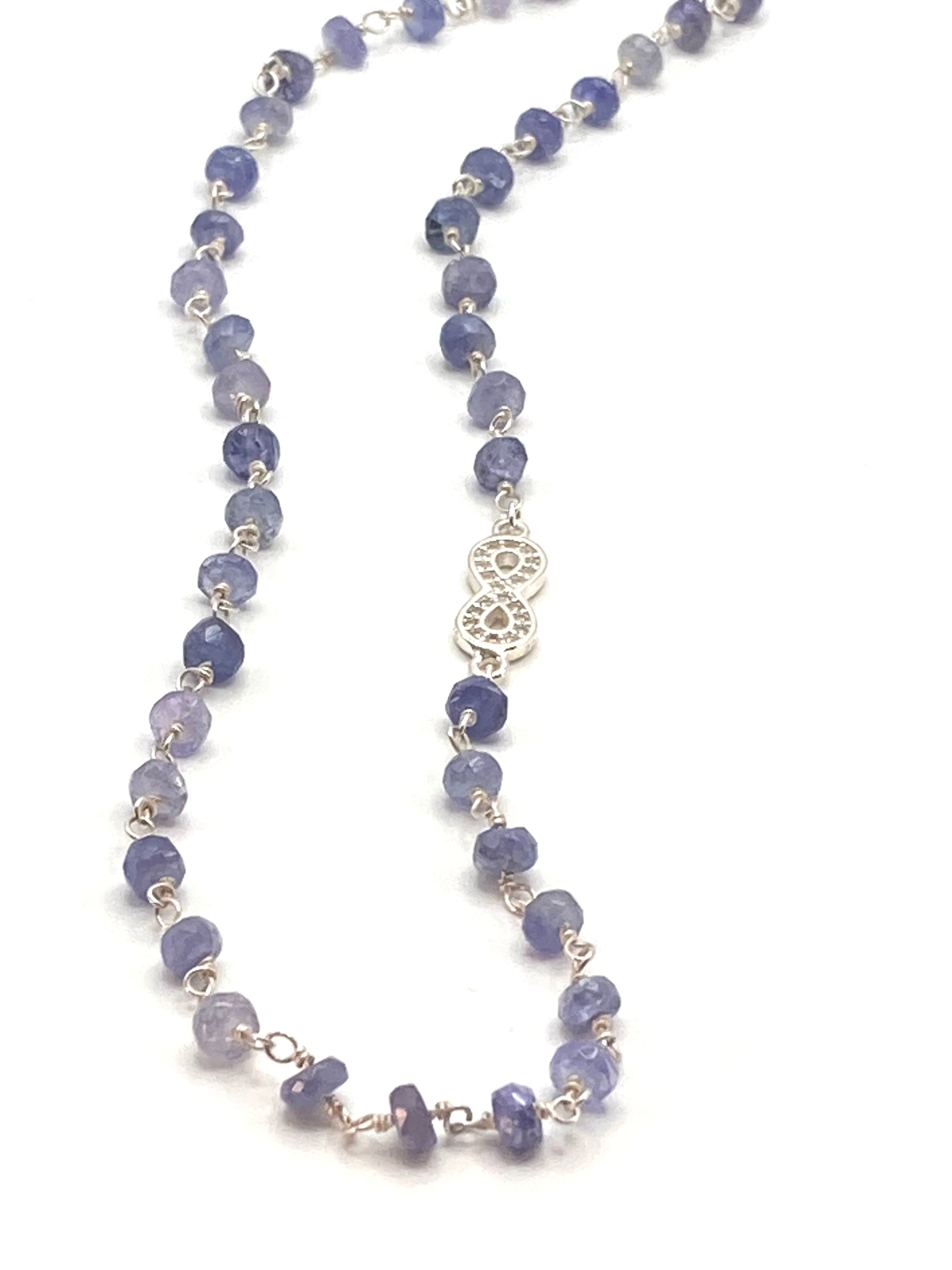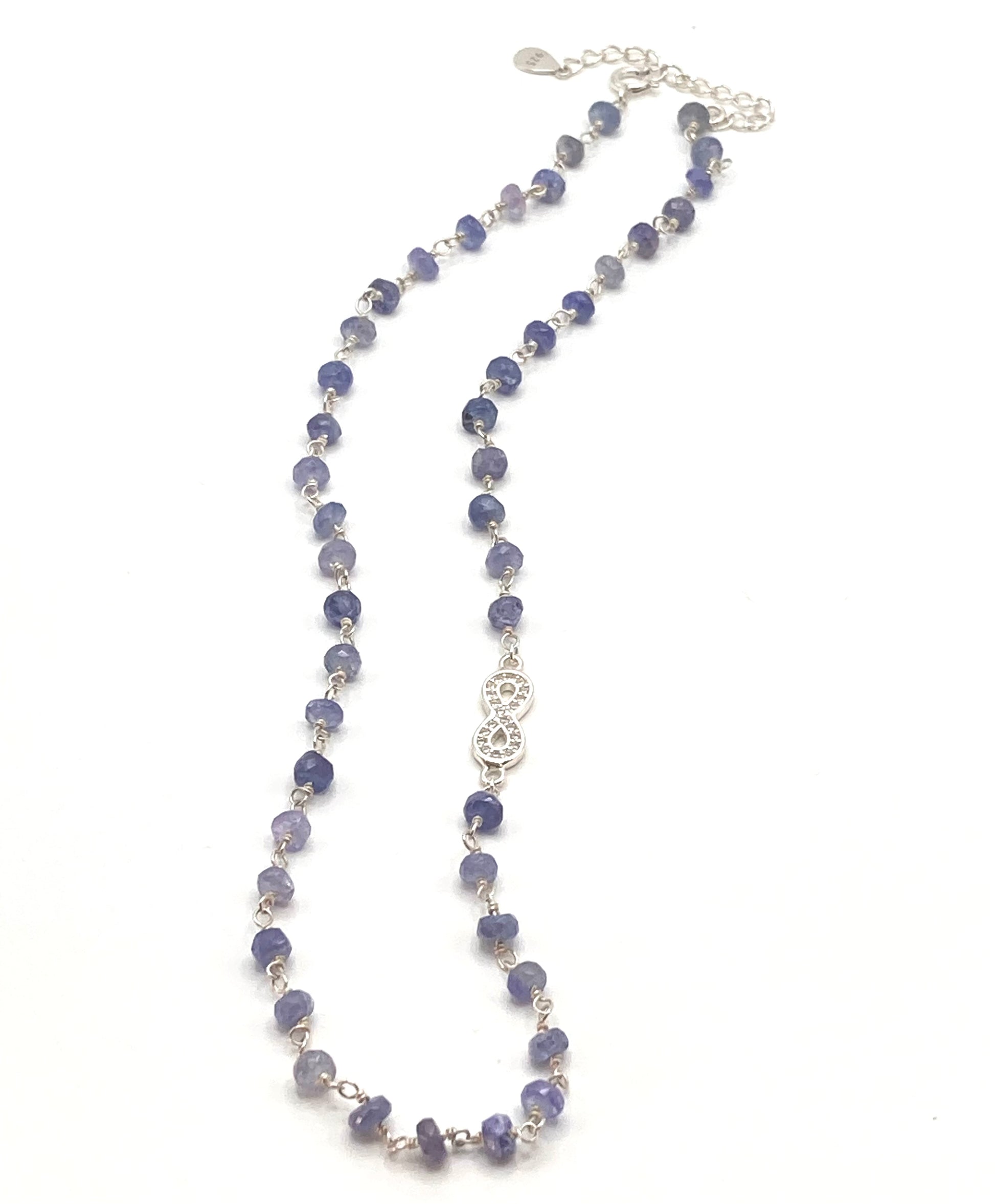 Collana Rosario in Argento 925, con pietra naturale, connettore Infinito con zirconi ca. 13mm, posizionato lateralmente, misura regolabile con estensione