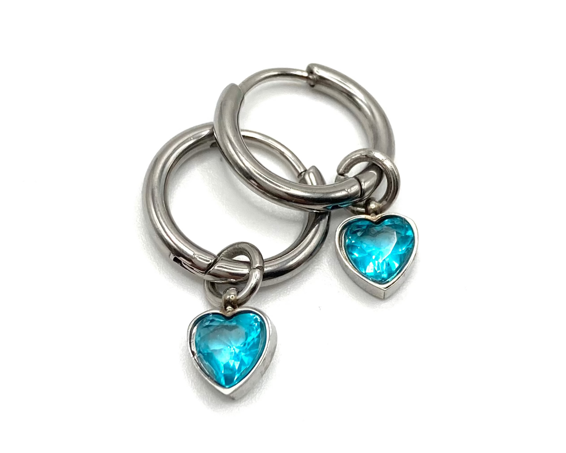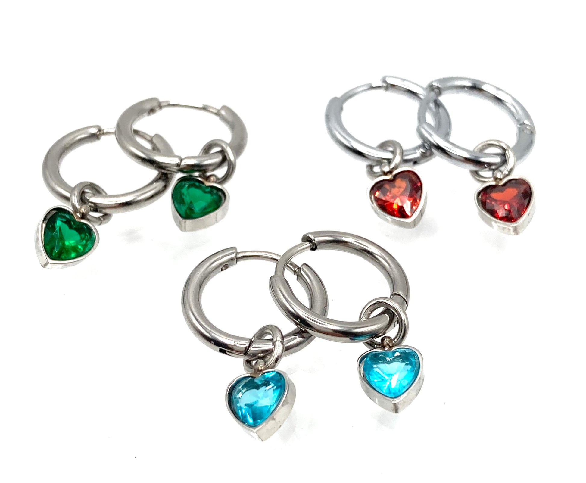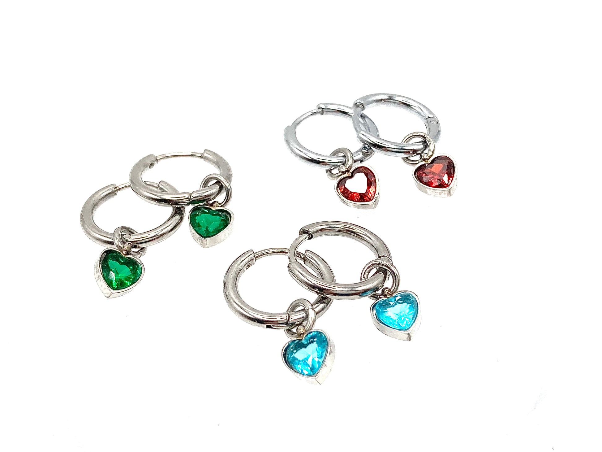 Orecchini a cerchio in acciaio, con charms a forma di cuore punto luce in zircone 6mm