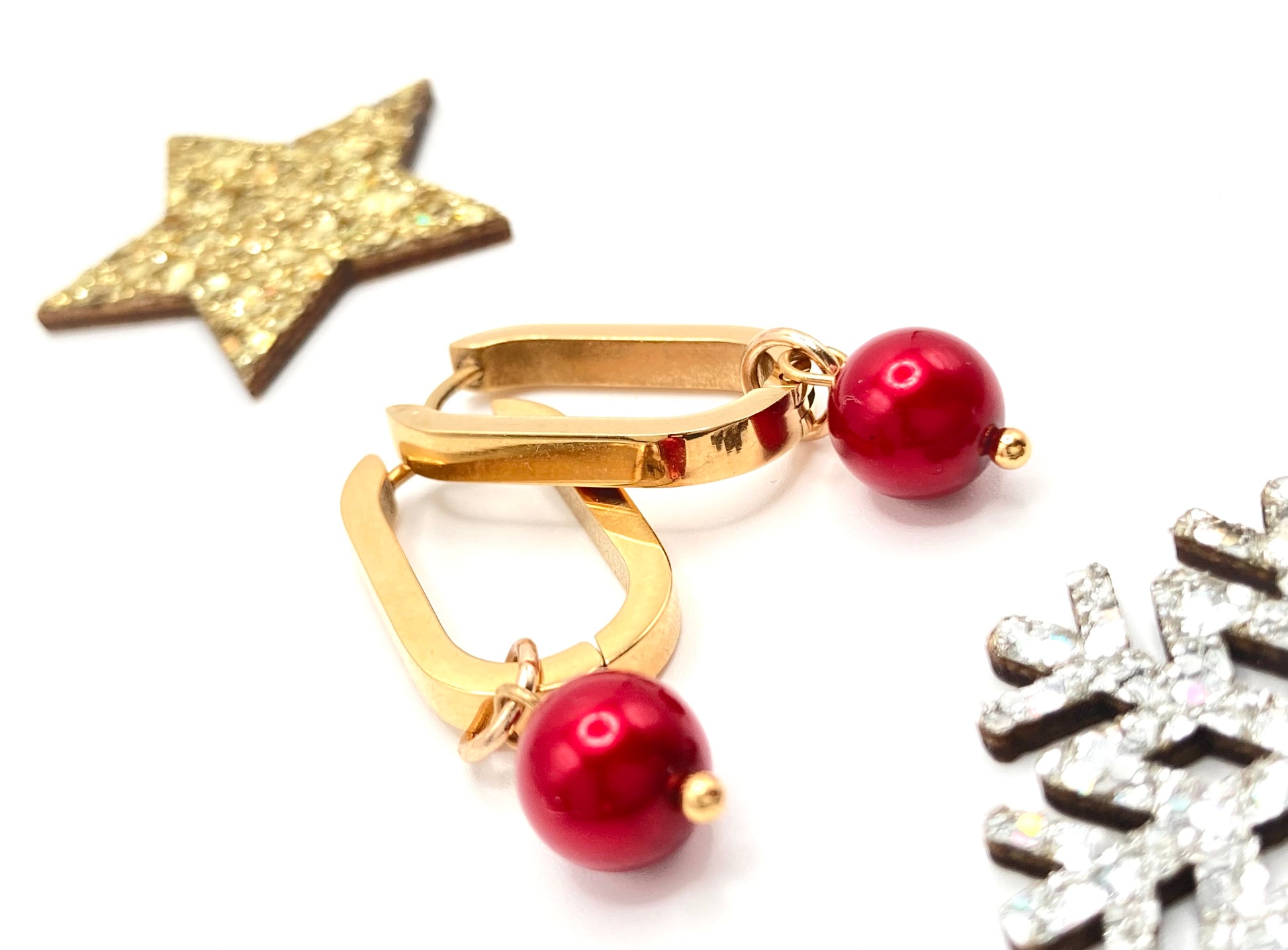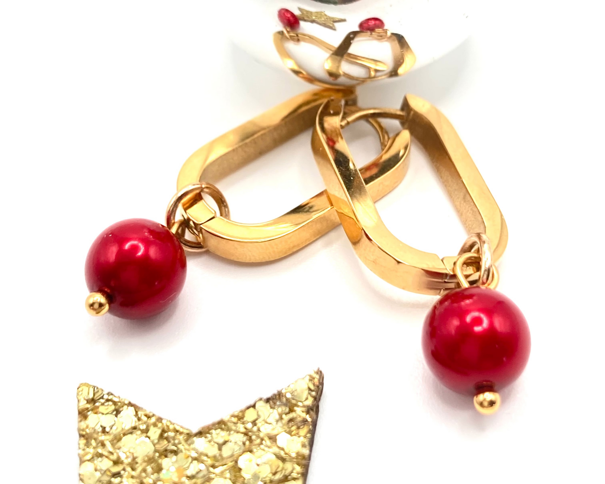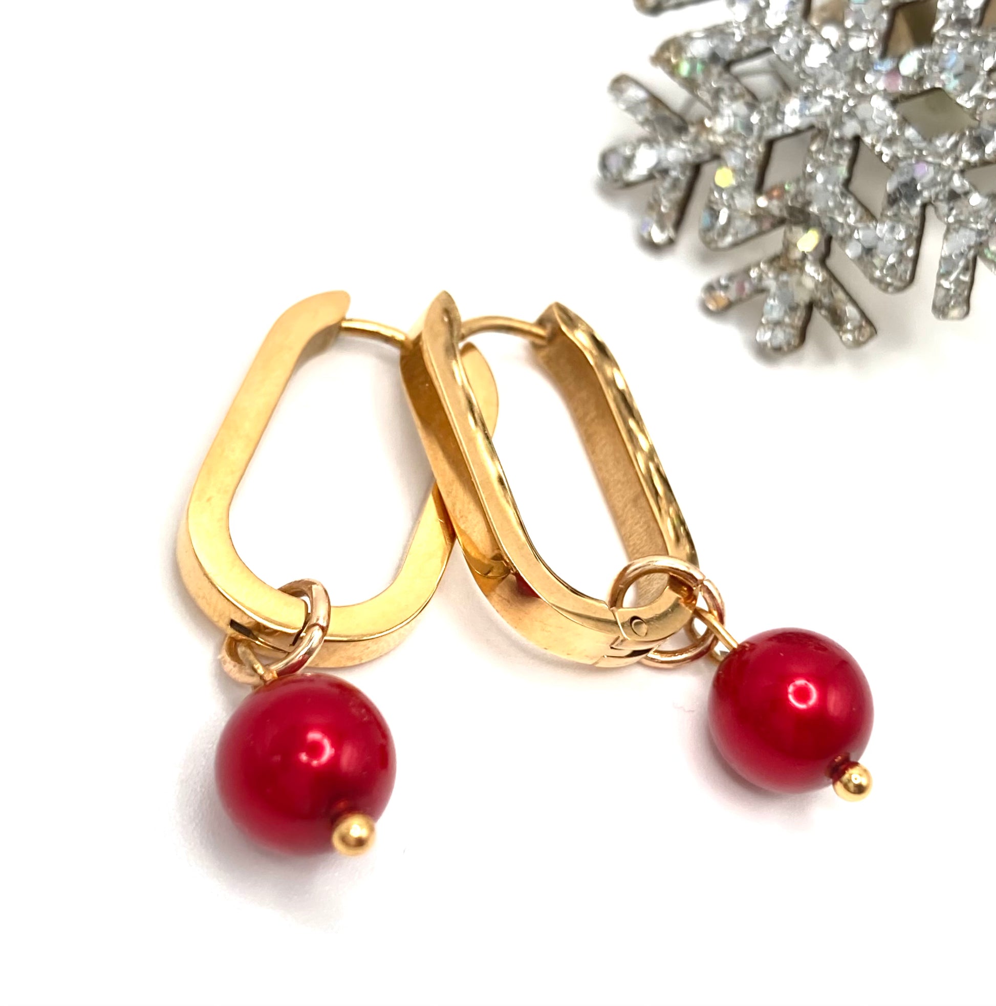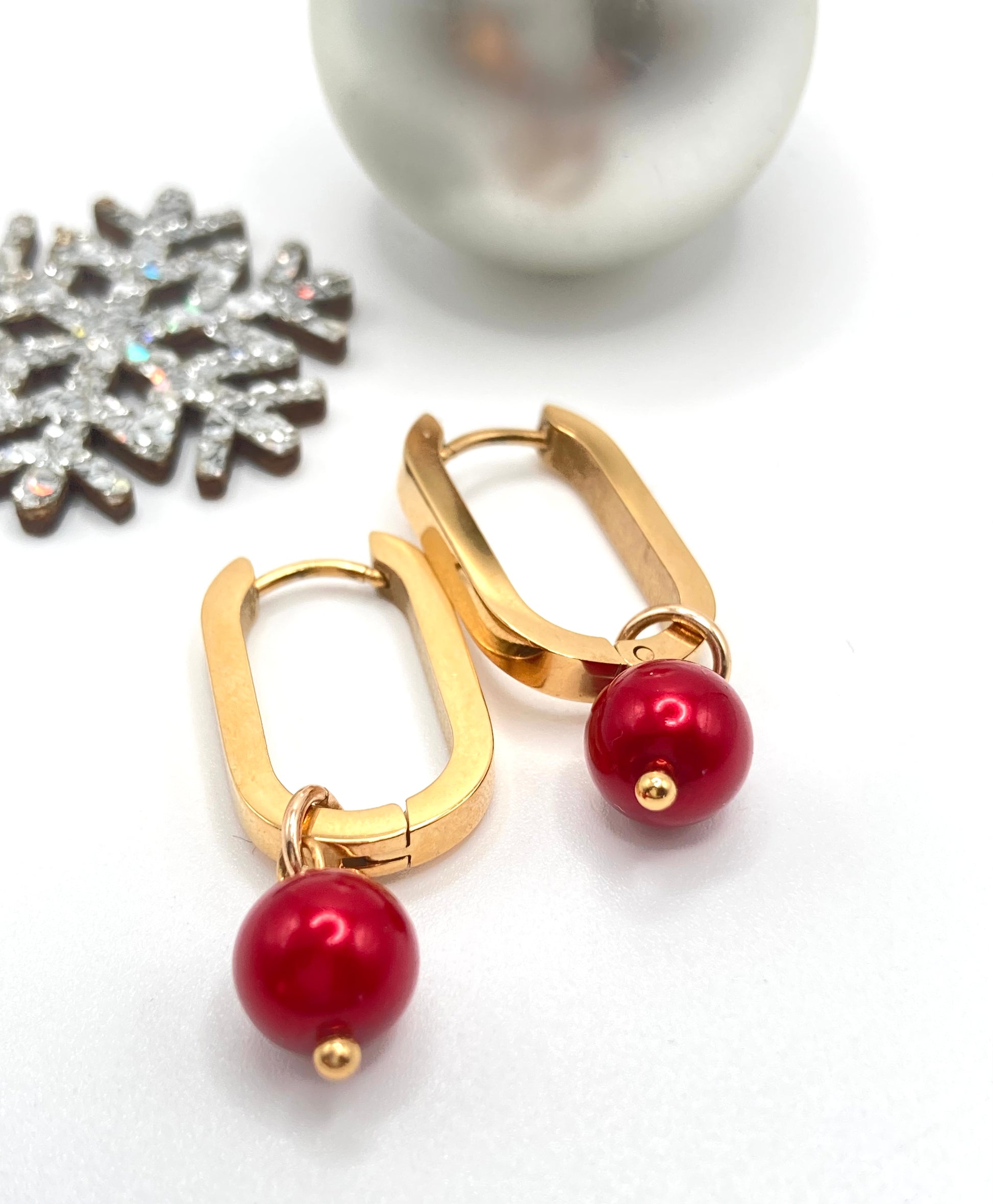 Orecchini in acciaio a forma di ovale piatto grosso spessore 21x13mm, charm con perla tonda in vetro da 8mm.