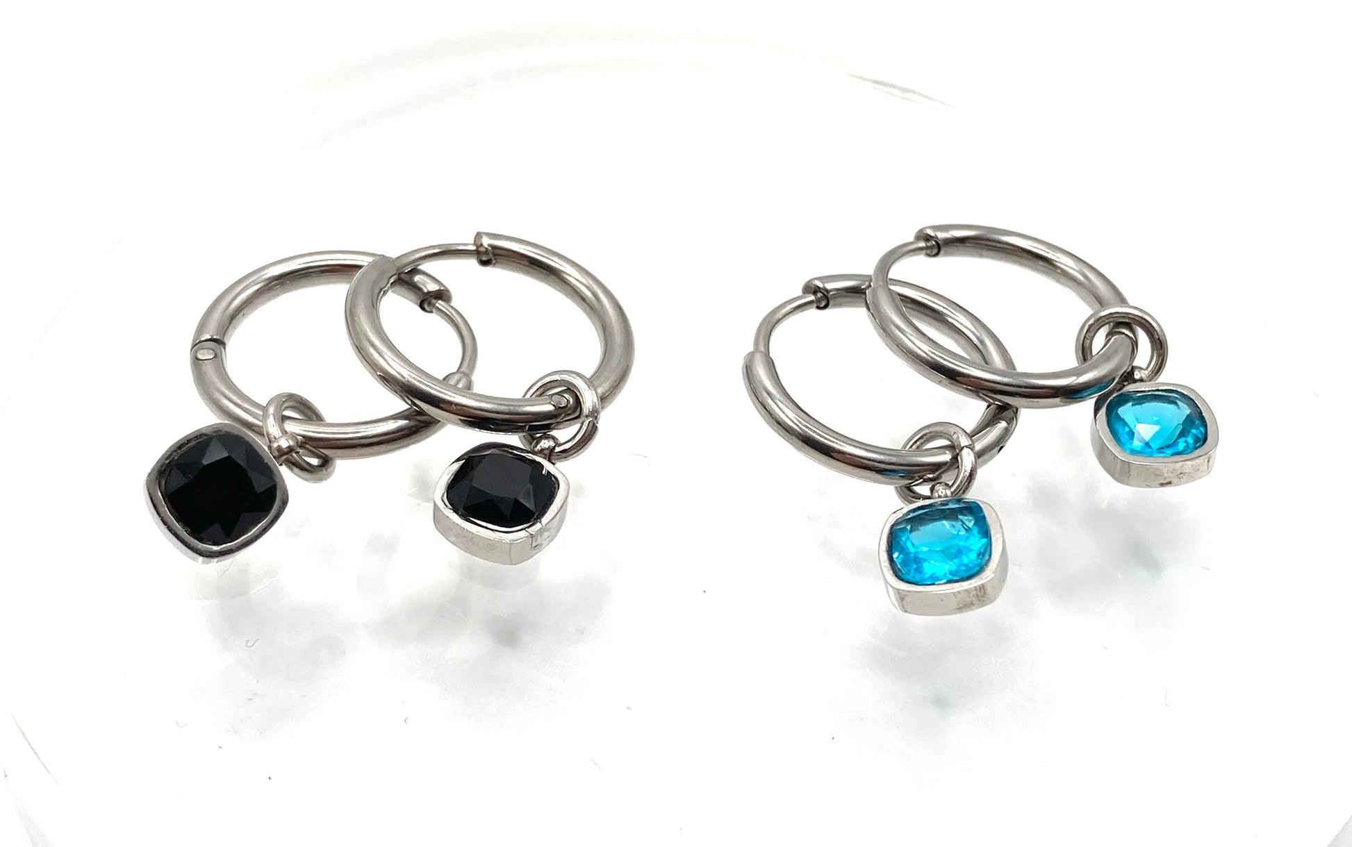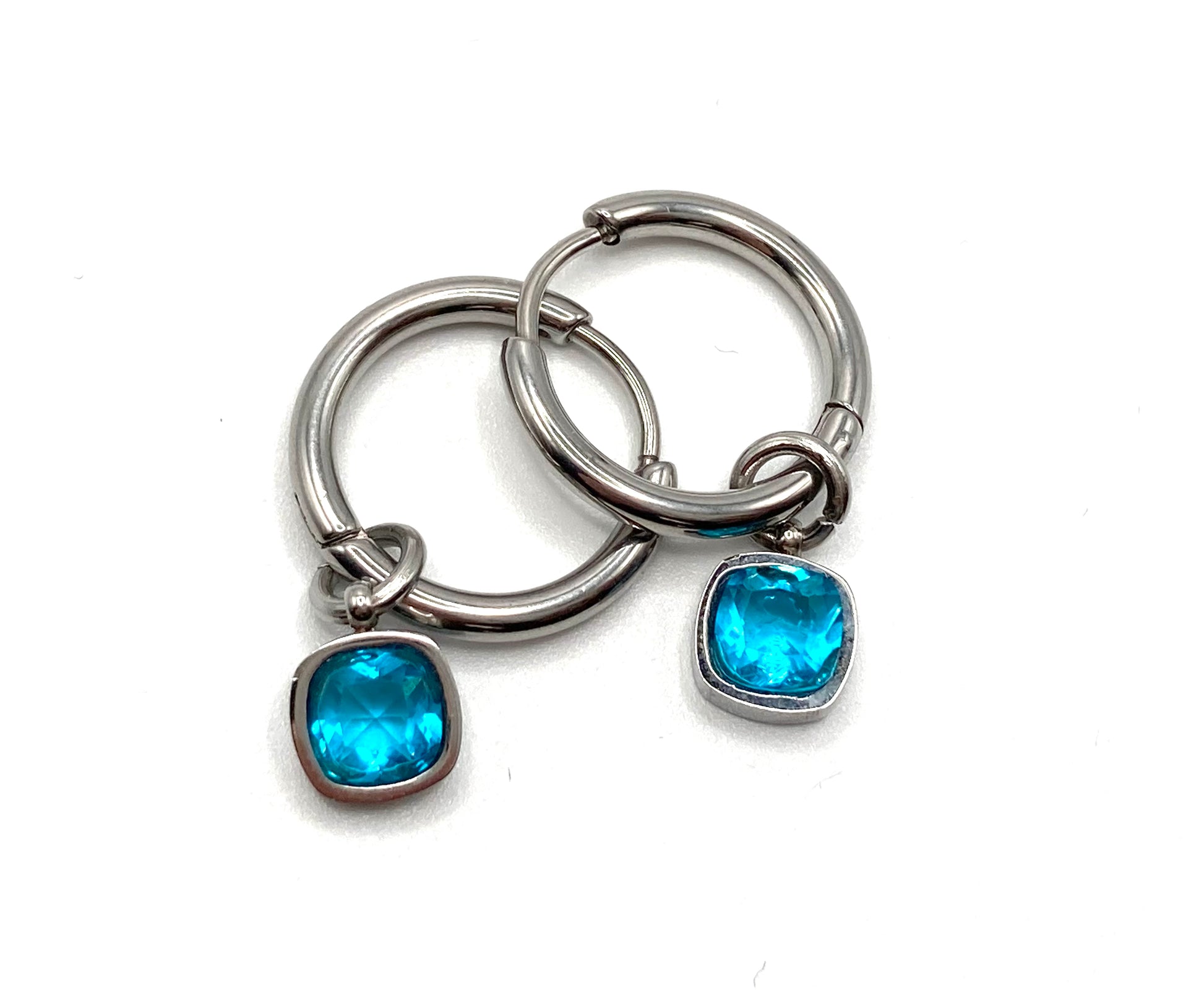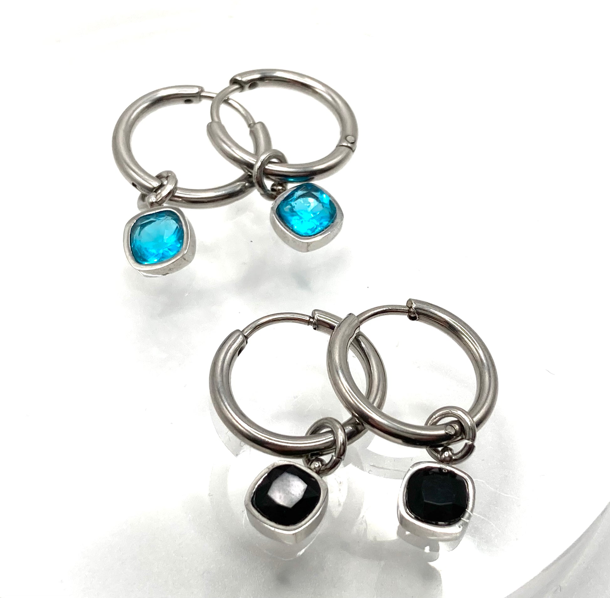 Orecchini a cerchio in acciaio, con charms punto luce in zircone 6.5mm